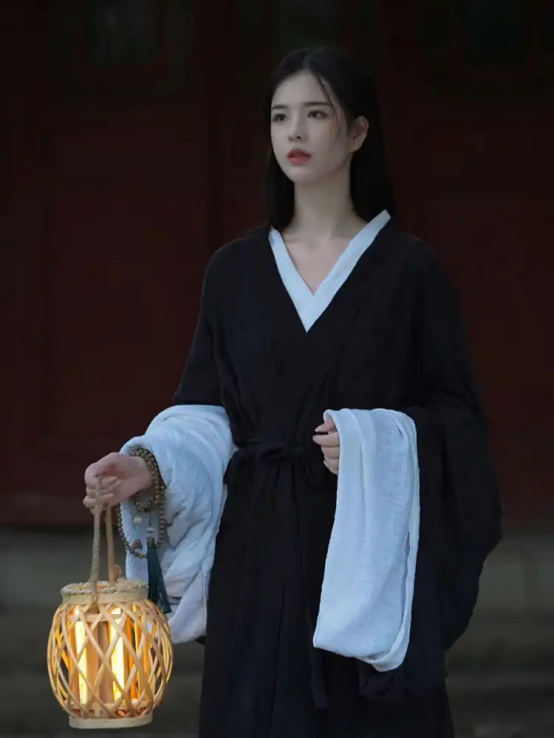 For women, black Hanfu exudes elegance and grace. Choosing styles with crossed collars, right lapels, and flowing wide sleeves, paired with jade hairpins or pearl necklaces, highlights a dignified charm.