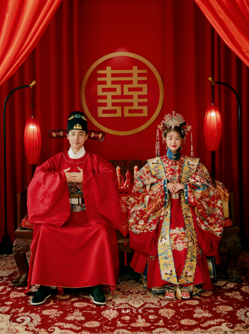 The colors of ancient Chinese wedding attire hold profound cultural significance, and great care must be taken in the selection of colors. Each color choice and combination embodies deep aspirations,and reflects the ancient Chinese cultural concepts of harmony between heaven and earth, the interdependence of all things, and the pursuit of romance.