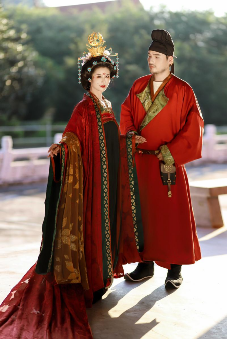 During the Tang Dynasty, wedding attire exhibited a unique sense of magnificence. Influenced by the open culture of the time, the bride’s attire became more colorful, with countless designs featuring silk and embroidery, and numerous gold and silver decorations were added—all of which vividly demonstrated the prosperous scene of the Tang Dynasty.