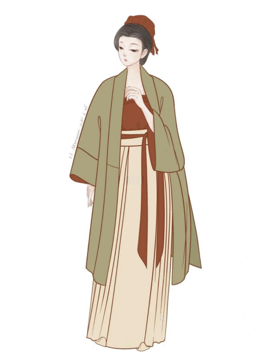 In the early Northern Song Dynasty, it inherited the style of the Tang Dynasty clothing. Women’s Beizi was loose and matched with long skirts. In the Southern Song Dynasty, due to social unrest, clothing tended to be more practical. The decorative function of Beizi gradually evolved into a part of traditional clothing. First, the body of the clothes became narrow and long, extending from above the knees to the ankles. The sleeve shapes were divided into inward and outward expansion types. There were also great innovations in matching. The inner layers expanded from mamian to narrow-sleeved ru and shirts. Skirts and pants were sometimes matched interchangeably. Noble women usually wore pearl crowns on their heads, while common people used cloth belts to tie their hair.