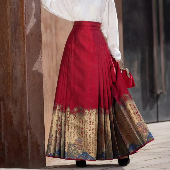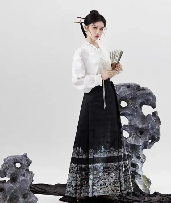 For important meetings, pair a satin long shirt with a dark mamianqun. The subtle gold-woven patterns on the skirt exude dignity with an oriental vibe.The mamianqun’s design flexibility creates many unique modern workplace styles. Designers cleverly shorten it to above the ankle, paired with pointed high heels, retaining traditional features while enhancing neatness. Improved small cross collars or V-necks fit modern aesthetics and make it easier to match accessories. For a striking look, wear a silk jacquard shirt with a mamianqun and a delicate blazer—blending ancient and modern for a fresh, confident aura. Add details like buttoned tops, traditional-style brooches, or silk scarves to shape your overall style and strengthen personal charm.