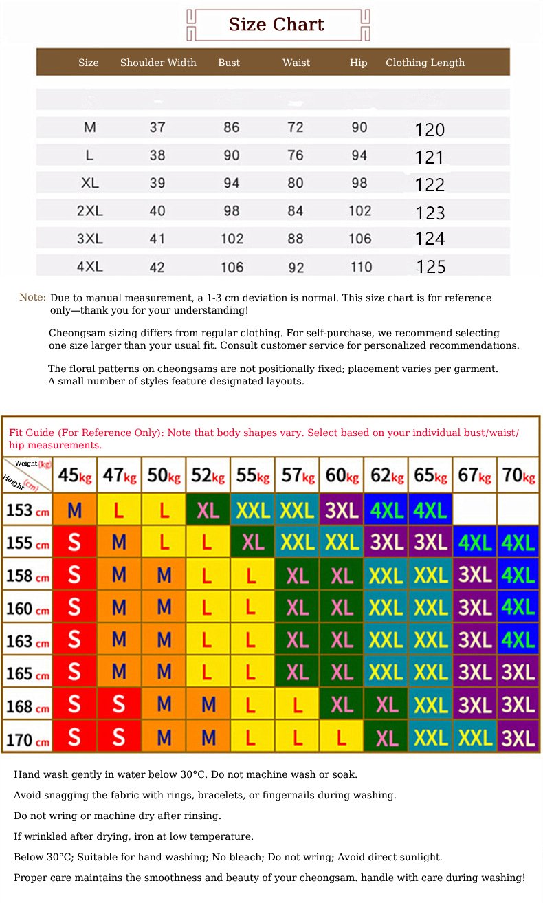 Our stand-collar qipao hugs your silhouette gracefully, flattering all body types. With sleeves ending at the elbow (capped or flowing styles available), you’ll move freely without sacrificing elegance. The tailored fit ensures a sleek look—ideal for both casual strolls and formal gatherings.